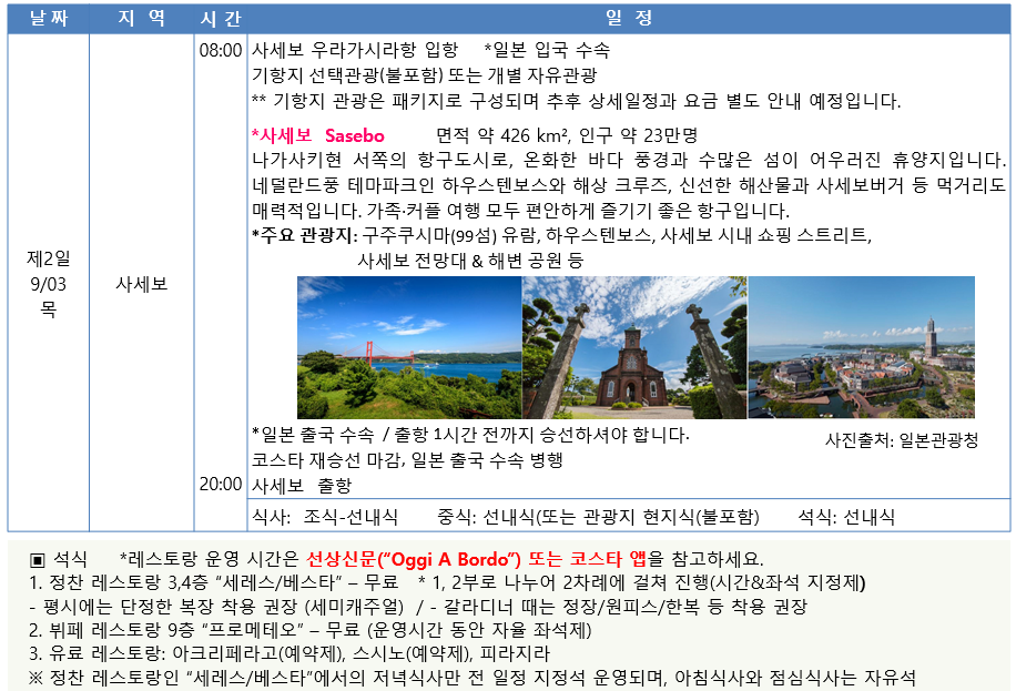 * 출입국 서류 관련 문제로 출입국이 불가능한 경우 그 책임은 여행자 본인에게 있으며, 당사나 크루즈 선사는 책임을 지지 않습니다.